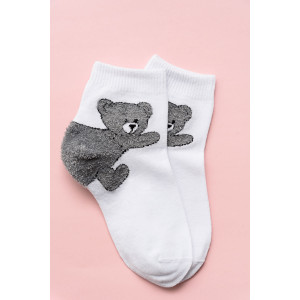 Представляем Вашему вниманию набор детских носков с изображением плюшевого медведя. Медведь связан из фантазийной пряжи с "пушком", что придает объемности и пушистости изделию.