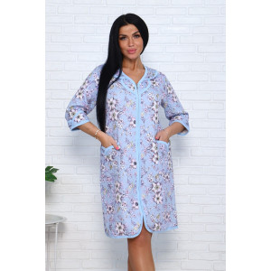 Халат женский 417 капитоний (р-ры: 48-62) голубой-сиреневый-цветы