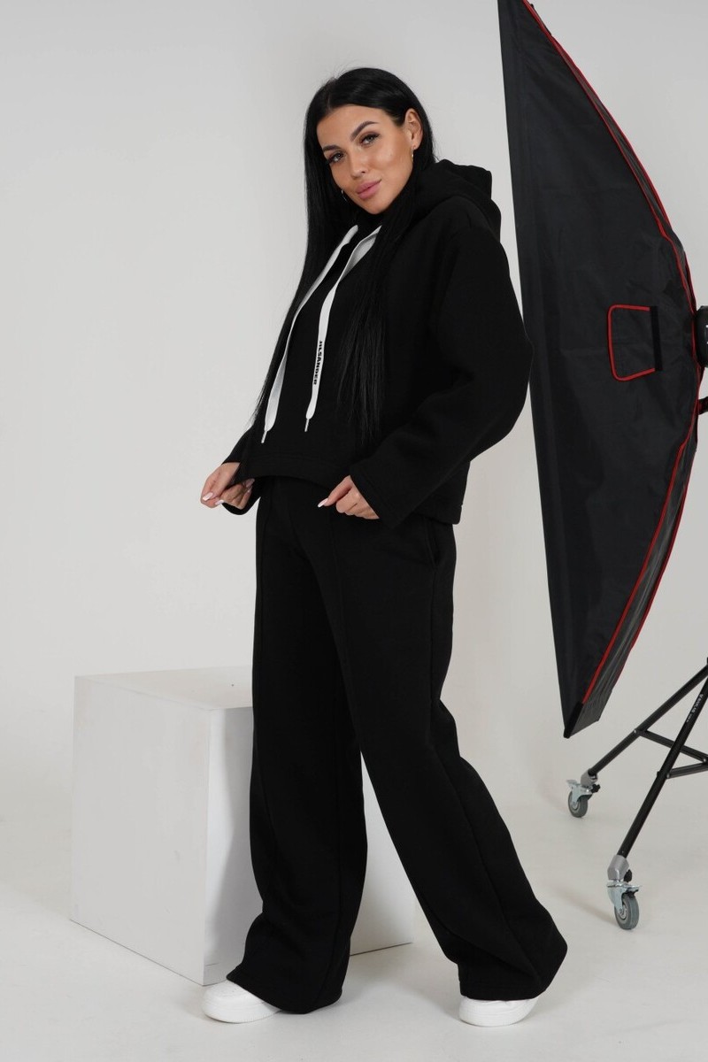 Свитшот женский "Кайра" футер 3-х нитка с начесом пенье (последний размер) черный 48,58