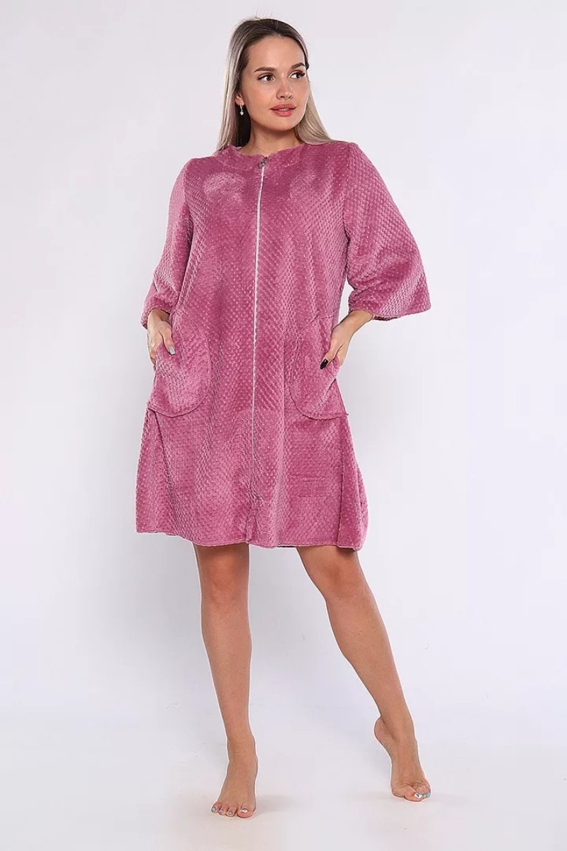Халат женский 327 "Соты" велсофт (р-ры: 48-58) сухая роза