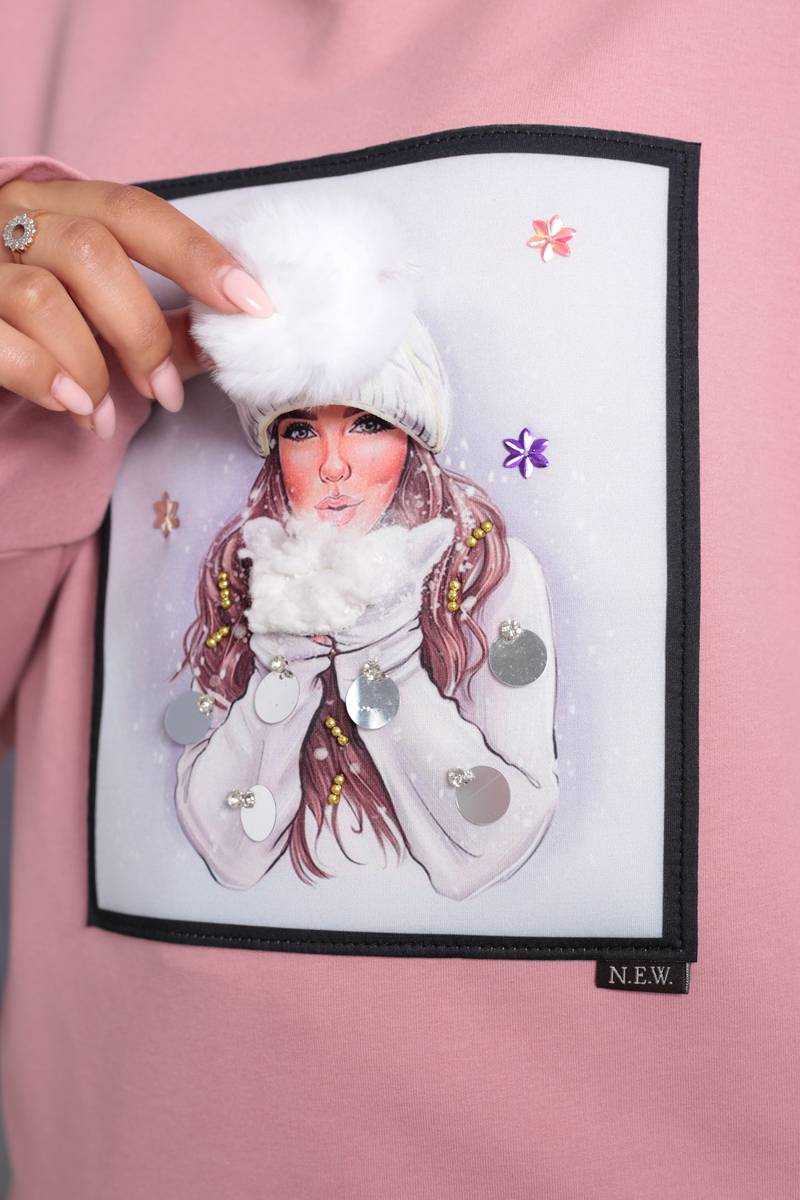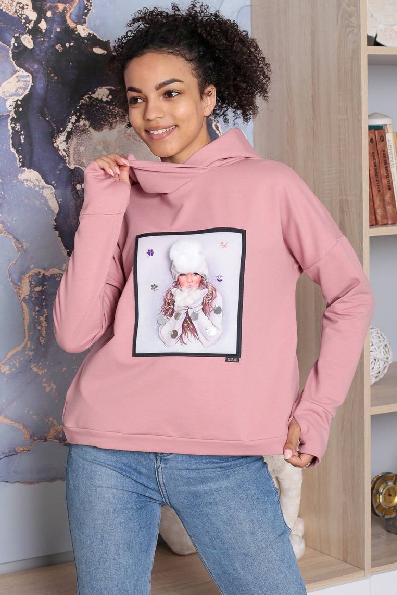 Представляем Вашему вниманию эффектную женскую толстовку, дополненную уютным капюшоном и небольшими кармашками по бокам. Модель, украшенная стильным принтом на полочке, сделана из высококачественного футера с добавлением лайкры, за счет которой изделие сохранит свою форму даже после многочисленных стирок и длительной носки.