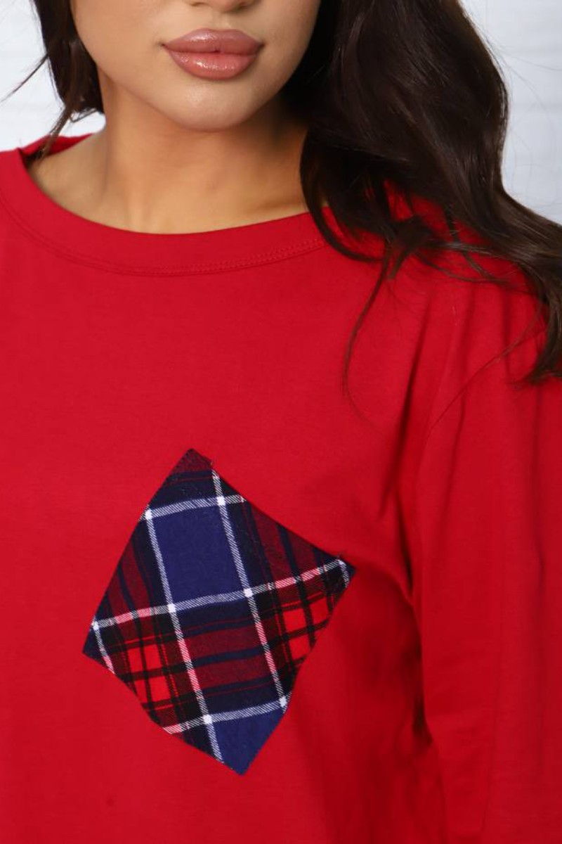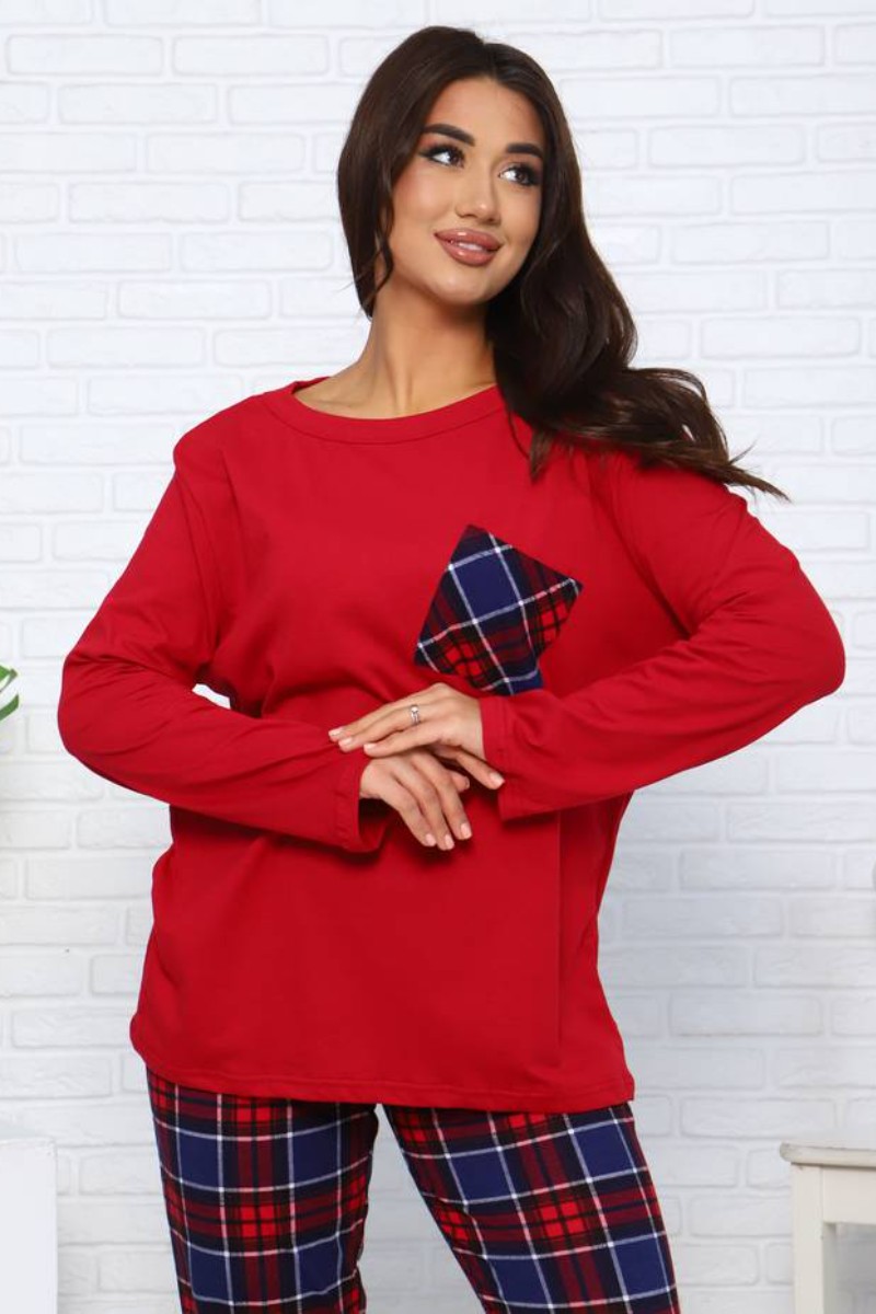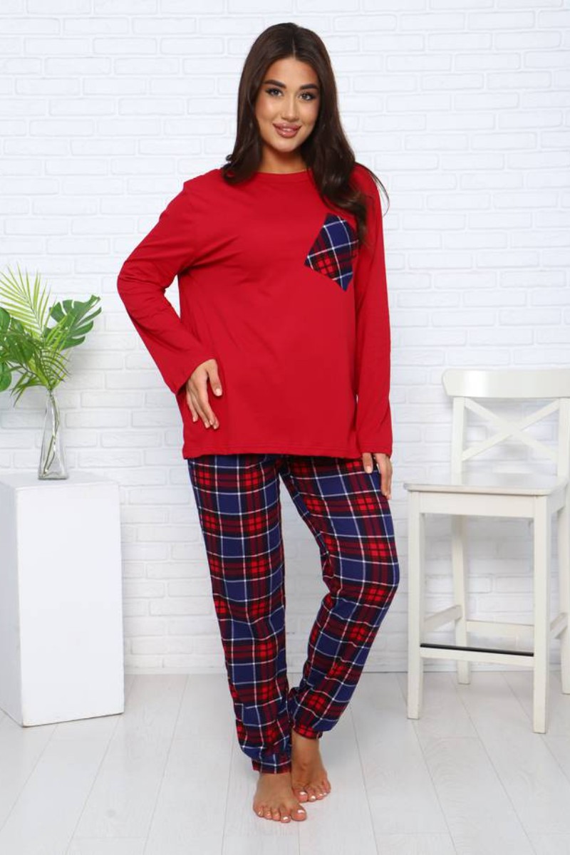 Представляем Вашему вниманию удобный женский костюм двойку для дома, состоящий из длинных брюк и футболки с длинным рукавом, украшенной декоративным кармашком на полочке. Комплект изготовлен из воздухопроницаемого, натурального материала, который мягко облегает тело, позволяя коже дышать и обеспечивая приятные тактильные ощущения во время домашнего отдыха.