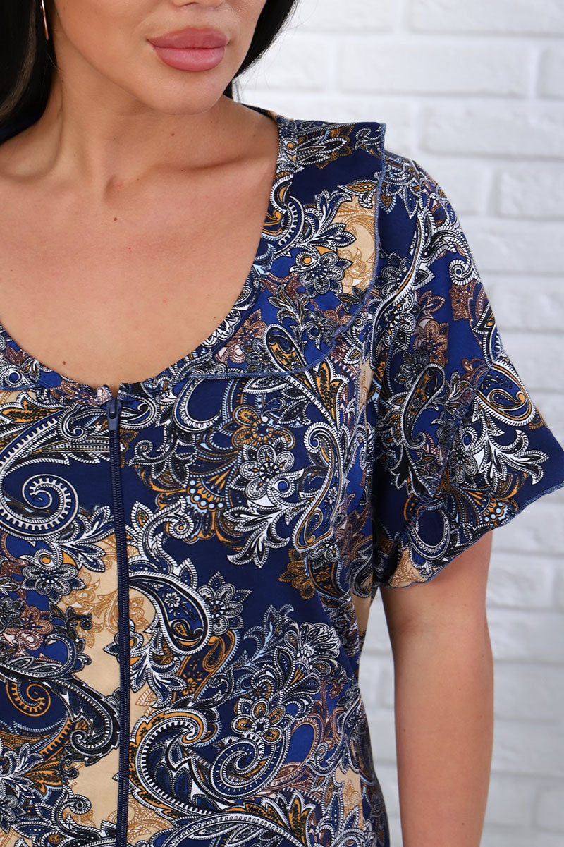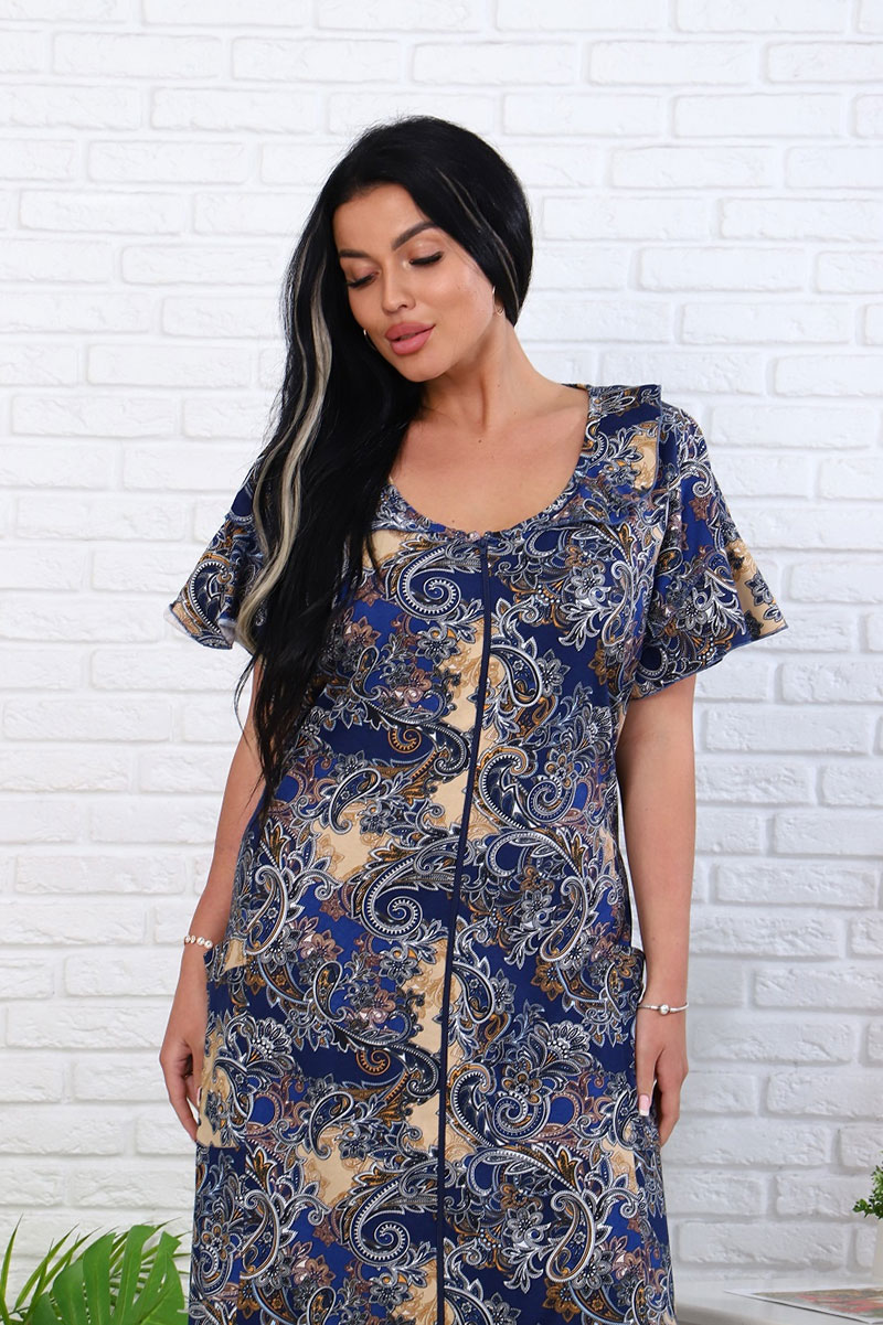Халат женский 020 "Великан" кулирка (последний размер) синий-коричневый огурцы 60-62