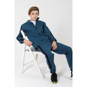 Представляем Вашему вниманию костюм подростковый из приятного к телу и комфортного в эксплуотации хлопкового футера с добавлением лайкры. Джемпер с воротником-стойкой, со спущенной линией плеч, с застежкой на разъемную молнию, закрытую с изнаночной стороны подбортом, с карманами в боковых швах. Брюки с боковыми карманами, отрезным поясом с отстроченной эластичной тесьмой и внутренним шнуром для регулировки свободы прилегания по линии талии. По низу джемпер, рукава и брючины собраны на эластичную тесьму. По линии плеч, центру рукавов и по боковым линиям брюк - контрастные втавки.