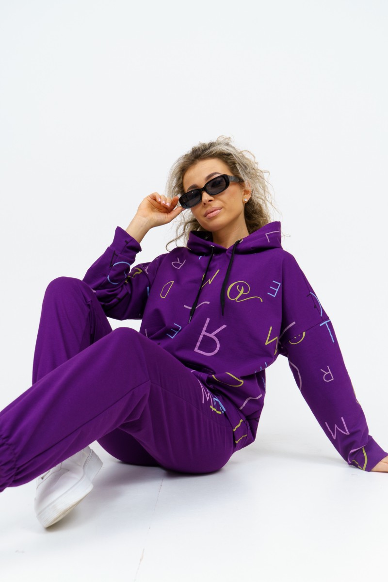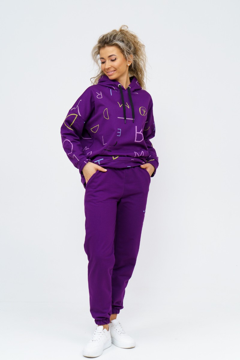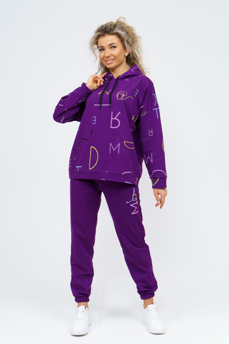 Костюм двойка женский 943 футер с лайкрой (р-ры: 42-56) фиолетовый