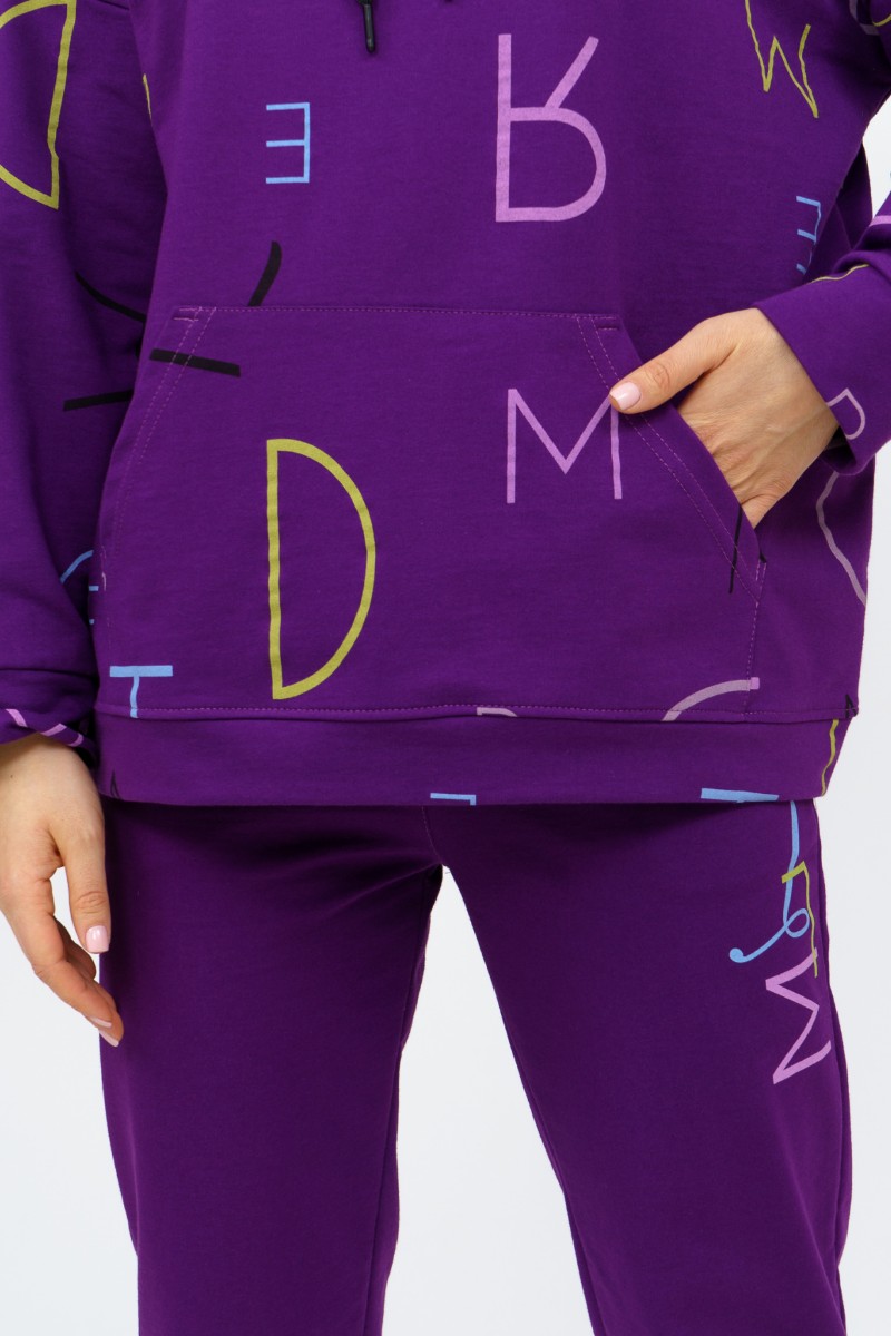 Представляем Вашему вниманию женский костюм двойку, сшитый из высококачественного полотна (футер 2-х нитка) качества пенье. Худи прямого силуэта, с карманом кенгуру, длиной до линии бедра. Горловина округлой формы, обработана капюшоном на кулисе. Спущенная линия плеча. Рукав длинный на притачном манжете. По низу изделия притачная планка. Брюки прямого покроя, слегка зауженные к низу, с наклонными карманами в боковых швах. Изделие с комфортной посадкой по талии. Пояс притачной на эластичную тесьму.