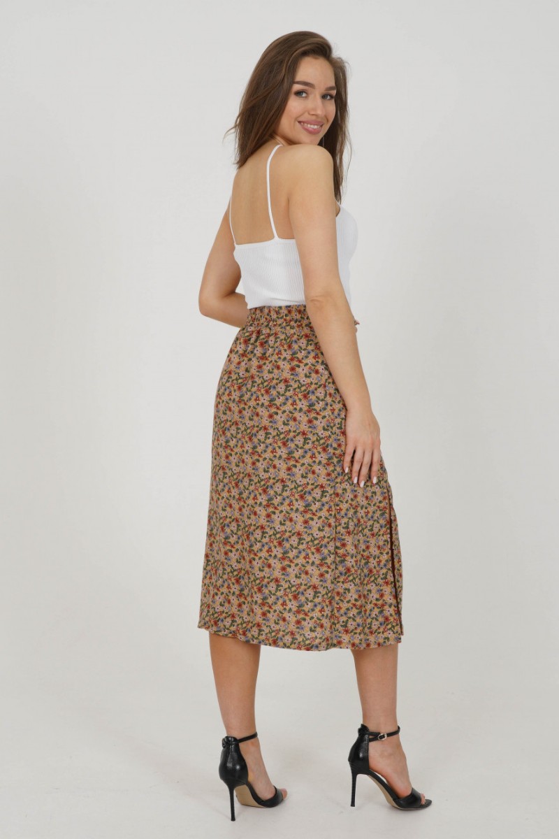 Юбка женская "Хельга" штапель (р-ры: 44-54) цветы бежевый