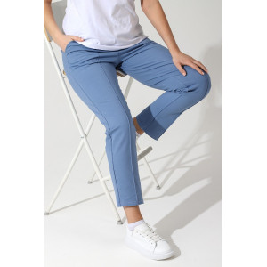 Представляем Вашему вниманию брюки женские из трикотажного полотна «футер-двунитка», длинные, классического покроя, на притачном поясе с эластичной тесьмой внутри и карманами в боковых швах. Передние половины застрочены по линиям центра, на задних половинах обработаны две вытачки в области линии талии.