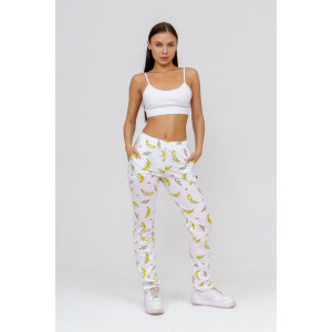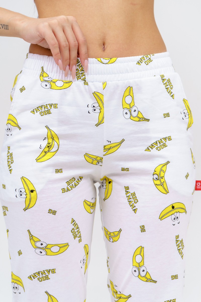 Брюки женские 2880 "Бананы на белом" трикотаж (р-ры: 42-56)