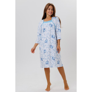Представляем Вашему вниманию уютную ночную сорочку из кулирки, длиной ниже колена, рукав длиной три четверти. Шов притачивания кокетки к полочке обработан окантовкой из ткани-компаньона. Зона декольте украшена кружевом.