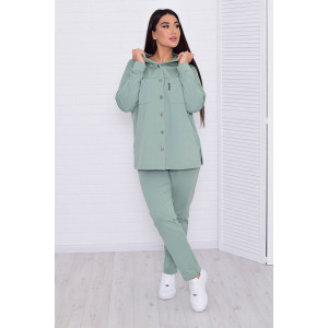 Представляем Вашему вниманию современный костюм из футера 2-х нитки. Куртка прямая, свободного кроя, застежка на петли – пуговицы с капюшоном, по бокам небольшие разрезы, рукава со спущенной проймой на манжете, на полочках кокетка и накладные карманы. Брюки прямые с высокой посадкой на широком поясе с резинкой, в боковых швах карманы.