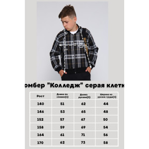 Бомбер детский "Колледж" трикотажное полотно (р-ры: 140-170) серая клетка
