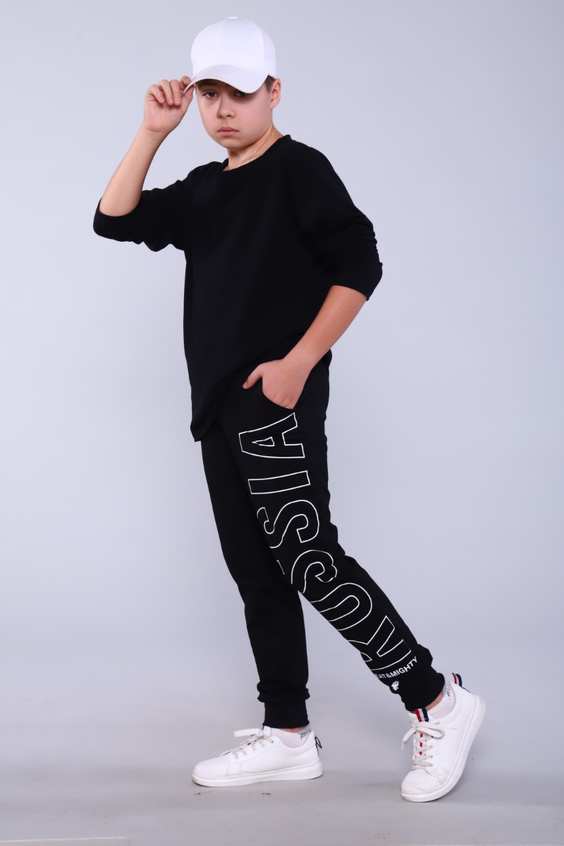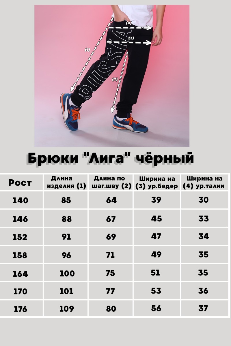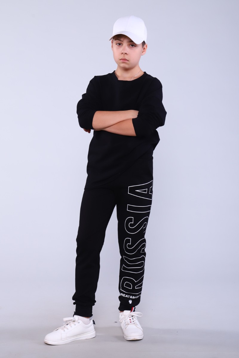 Брюки детские "Лига" футер 2-х нитка (р-ры: 140-176) черный
