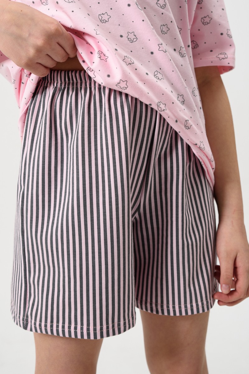 Представляем Вашему вниманию детскую пижаму для девочки с оверсайз футболкой и шортами. Выполнена из натуральной мягкой, приятной к телу трикотажной ткани средней плотности. Свободные шорты с удобной посадкой и нетугой резинкой без карманов не сковывают движений ребенка. Костюм для девочки с шортами можно носить дома или в садике, как пижаму или костюм. Яркие расцветки пижамы подойдут и для малышей и для подростков, а свободный крой и отсутствие застежек идеально для комфортного сна ребенка.