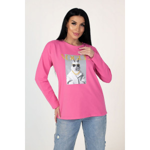 Представляем Вашему вниманию лонгслив женский прямого силуэта, свободный, до линии бедер. Плечо спущенное, рукав втачной, длинный. Горловина округлой формы с обтачкой. Горловина спинки с усилением. Спереди оригинальный принт.