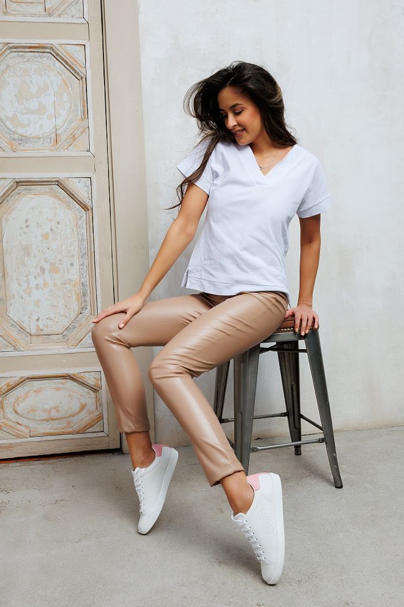 Представляем Вашему вниманию практичную футболку лаконичного дизайна. Модель выполнена в минималистичной расцветке. Рукав короткий. Вырез горловины V-образный. Ткань - трикотажное полотно, обладающее мягкостью и растяжимостью.