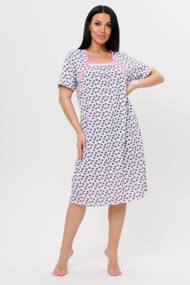 Представляем Вашему вниманию ночную сорочку, выполненную из трикотажного полотна 100% хлопка. Мягкая приятная ткань позволяет коже дышать. Ночная сорочка свободного кроя подойдет на любую женскую фигуру, а также для беременных. Ночная сорочка с коротким рукавом не сковывает движений. Грудь отделана кантом. U-образный вырез - тканью компаньоном и кружевом.