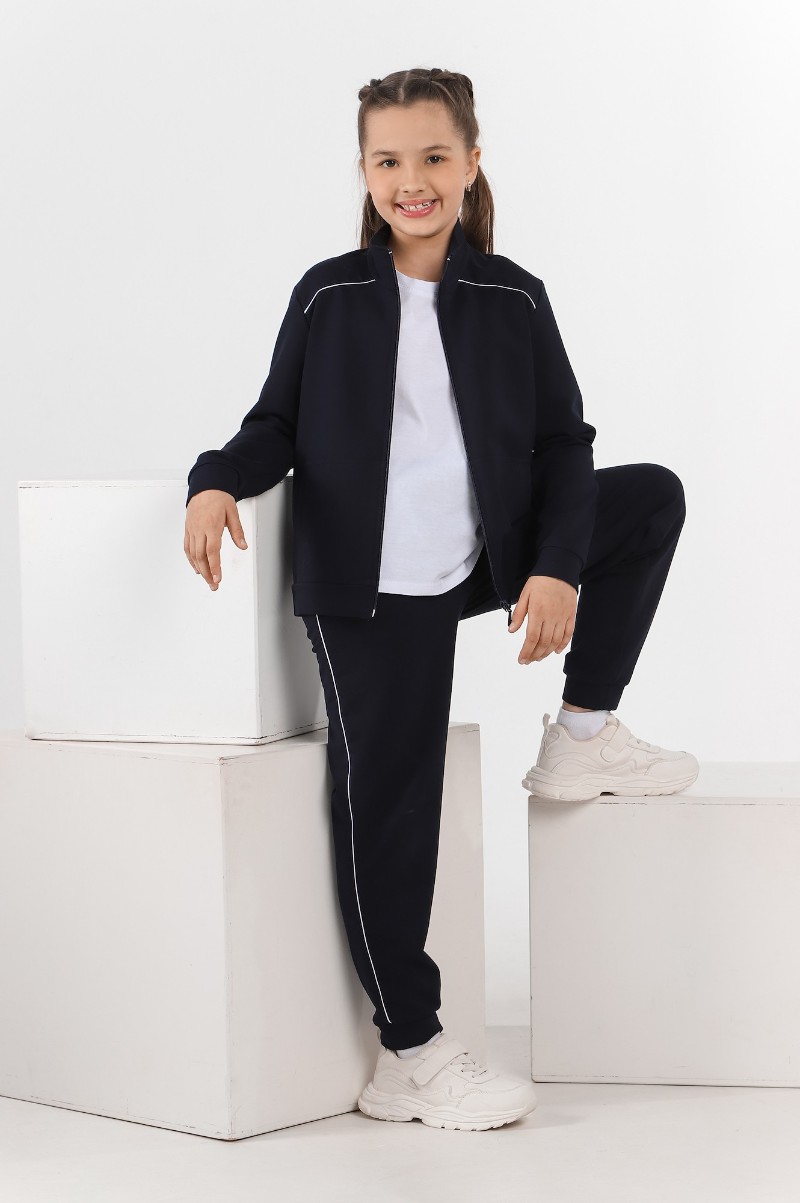 Костюм двойка детский "Скул-5" футер 2-х нитка с лайкрой (р-ры: 128-164) тёмно-синий