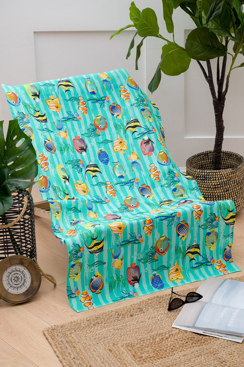 Полотенце банно-пляжное вафельное "Рыбки" голубой