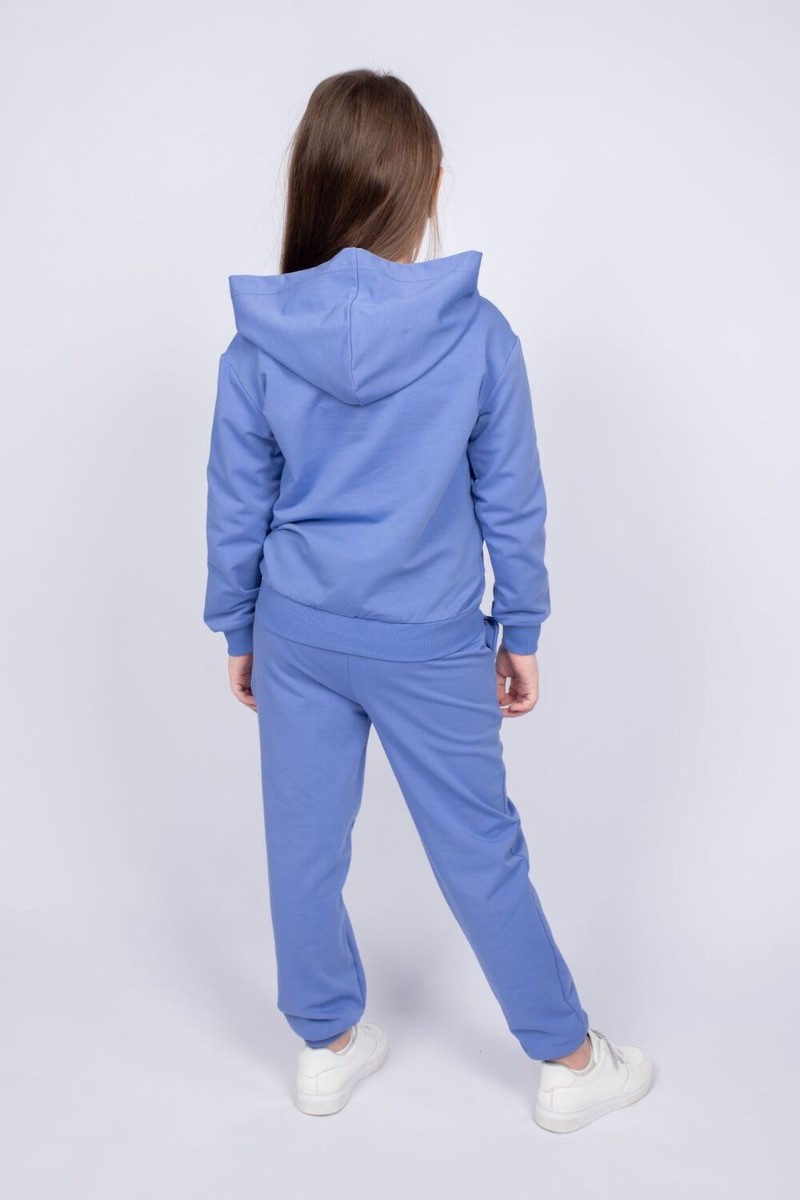 Представляем Вашему вниманию комплект для девочки, состоящий из джемпера и брюк. Толстовка прямого силуэта со спущенным длинным рукавом. Горловина круглая с капюшоном. Капюшон состоит из 2 половин, в цвет изделия. Горловина спинки внутри обработана бейкой из кулирки. Рукав заканчивается цельноскроенным манжетом с резинкой внутри. На полочке принт шелкография. Надпись переводится как "Привет; Давай веселиться; Мои друзья". Брюки прямого силуэта. Пояс отрезной, выполнен из основного полотна, в цвет изделия, с эластичной тесьмой внутри. На изделии выполнены карманы с отрезным бочком и отлетной мешковиной. По низу изделия цельноскроенные манжеты с эластичной тесьмой внутри.