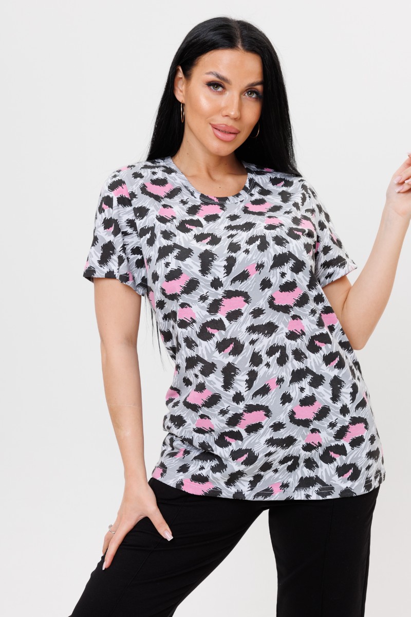 Представляем Вашему вниманию футболку с анималистическим принтом, сшитую из 100% трикотажного хлопкового полотна. Футболка имеет округлый вырез и короткие рукава. Леопардовый принт придает изделию оригинальность. Футболка прекрасно будет смотреться как заправленная, так и навыпуск. Размерный ряд представлен от 50 до 60 размера. Она подойдет для занятия спортом, сна, дома, офиса, прогулок и отдыха.