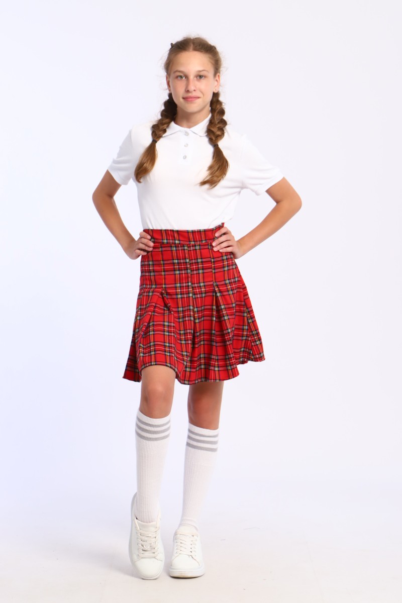 Юбка школьная "Корт" текстильное полотно (р-ры: 134-164) красная клетка
