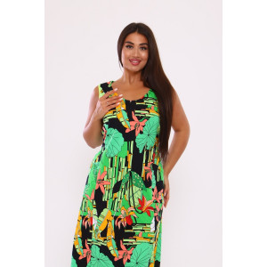 Сарафан женский 009 кулирка (р-ры: 54-70) черный-зеленый-лилия