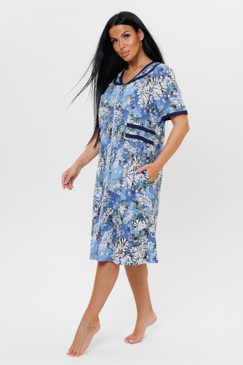 Халат женский 2032/1 кулирка (р-ры: 50-60) синий