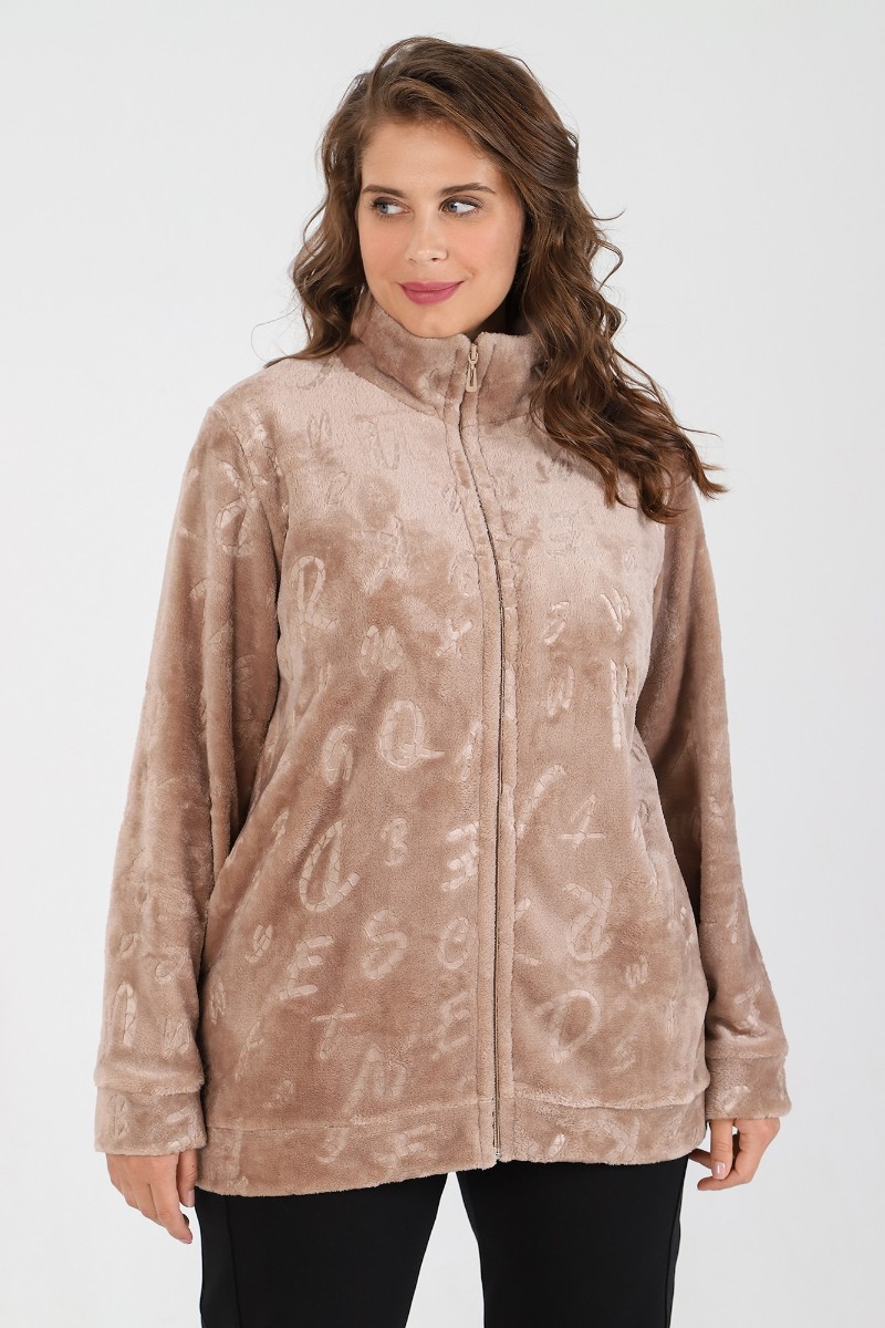 Представляем Вашему вниманию женский джемпер из полотна «велсофт», прямого силуэта, с длинными втачными рукавами, воротником «стойка», карманами в боковых швах, центральной бортовой застежкой на тесьму «молния» и вышивкой в верхней части левой полочки. Нижние срезы рукавов обработаны притачными манжетами. Низ изделия – с притачным поясом.