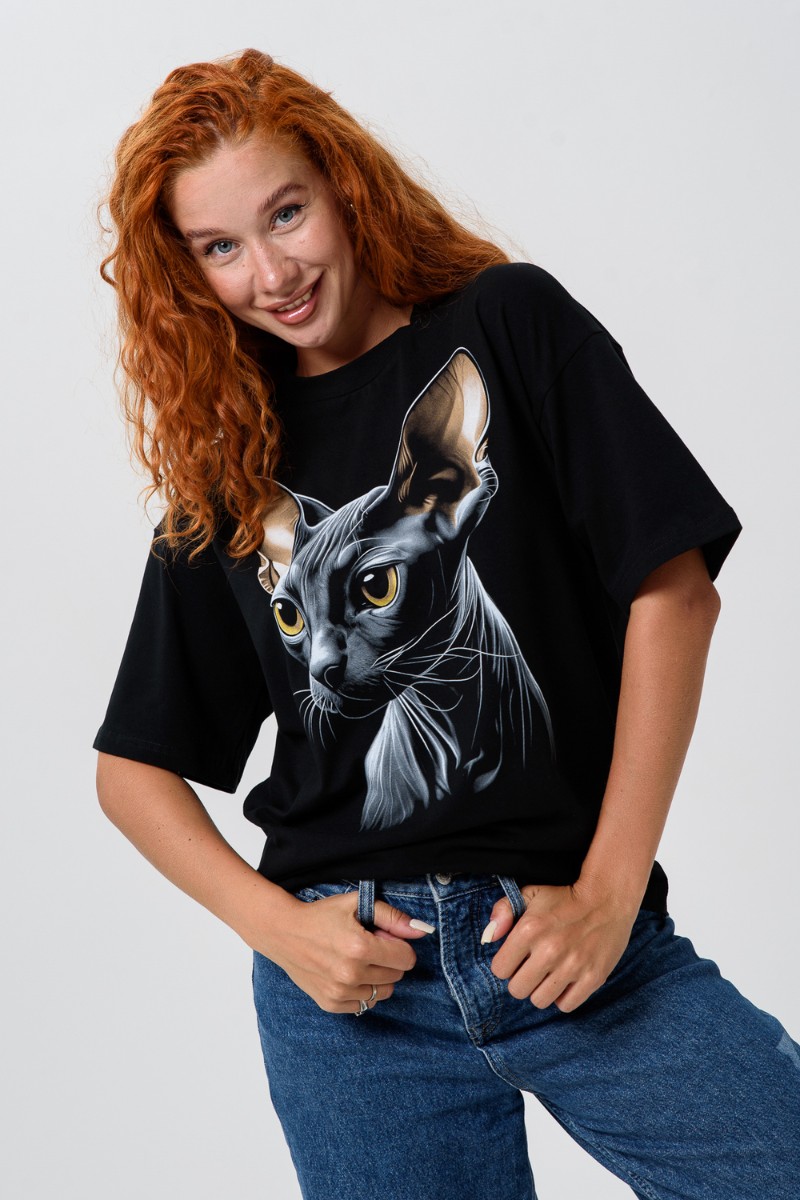 Футболка женская №8506 кулирка с лайкрой пенье (р-ры: 42-56) сфинкс-черный