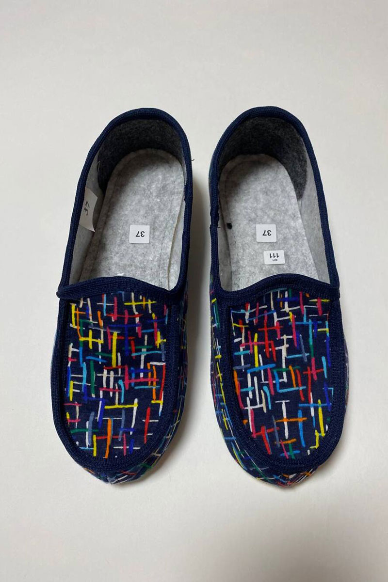 Тапки женские "Lepilov" арт. 111 смесовая ткань + рогожка (р-ры: 37-42) синие черточки