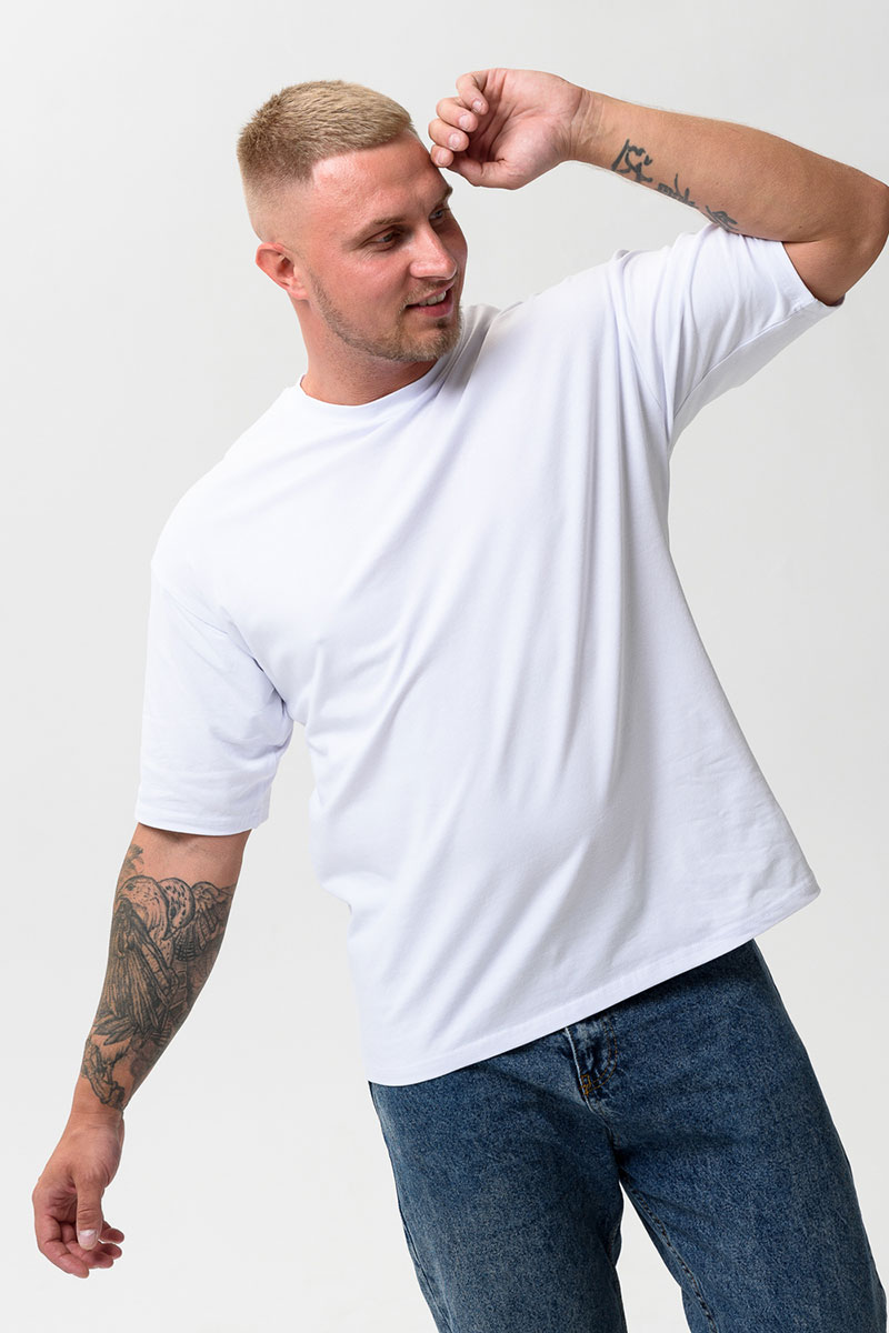 Представляем Вашему вниманию стильную и модную футболку со спущенными плечом для мужчин, созданную, чтобы вписаться в дух времени. Она представляет собой оверсайз-модель со спущенными рукавами, которые придают ей особый шарм и оригинальность. Футболка подходит как для дома и отдыха, так и для активных тренировок.