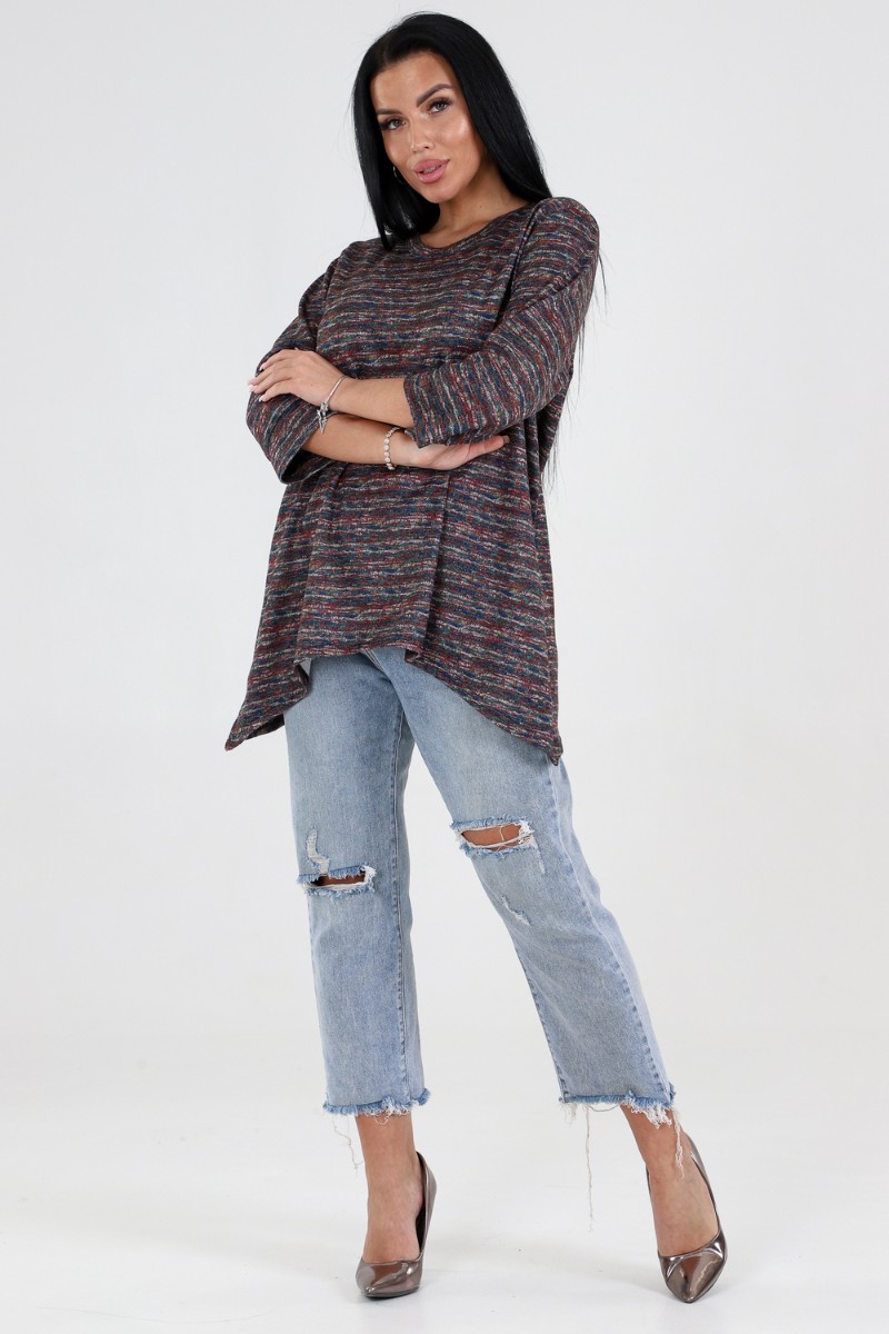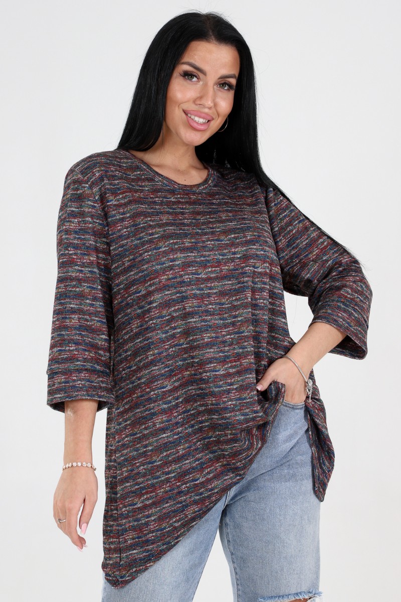 Представляем Вашему вниманию оригинальную женскую тунику, которую можно носить самостоятельно, либо дополнив образ лосинами или джинсами. Проверенный крой, свободный и не облегающий фигуру, не ограничивает движений, что немаловажно для беременных или полных женщин. А - силуэт с ассиметричной длиной миди, чуть выше колена интересно смотрится. Высокая посадка не акцентирует линию талии, расклешенный фасон сбалансирует фигуру с широкими плечами, скроет лишние сантиметры в бедрах. Благодаря свободному покрою такая одежда для дома и на выход хорошо смотрится на разных типах женской фигуры - подойдет и для большой груди, и пышных бедер.