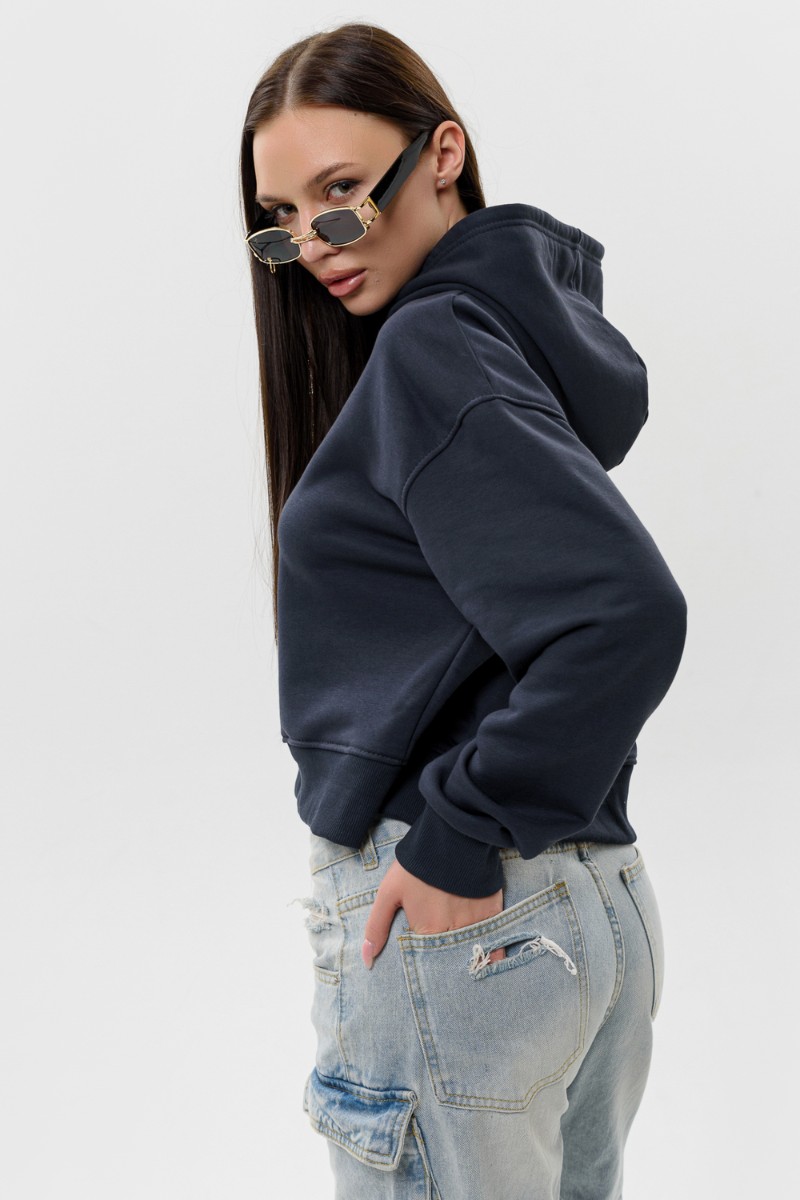 Худи женское №49481 футер 3-х нитка с начесом (р-ры: 44-50) графит