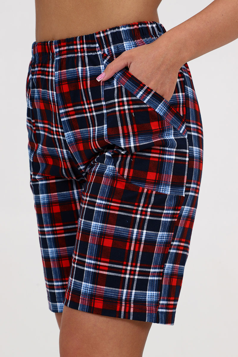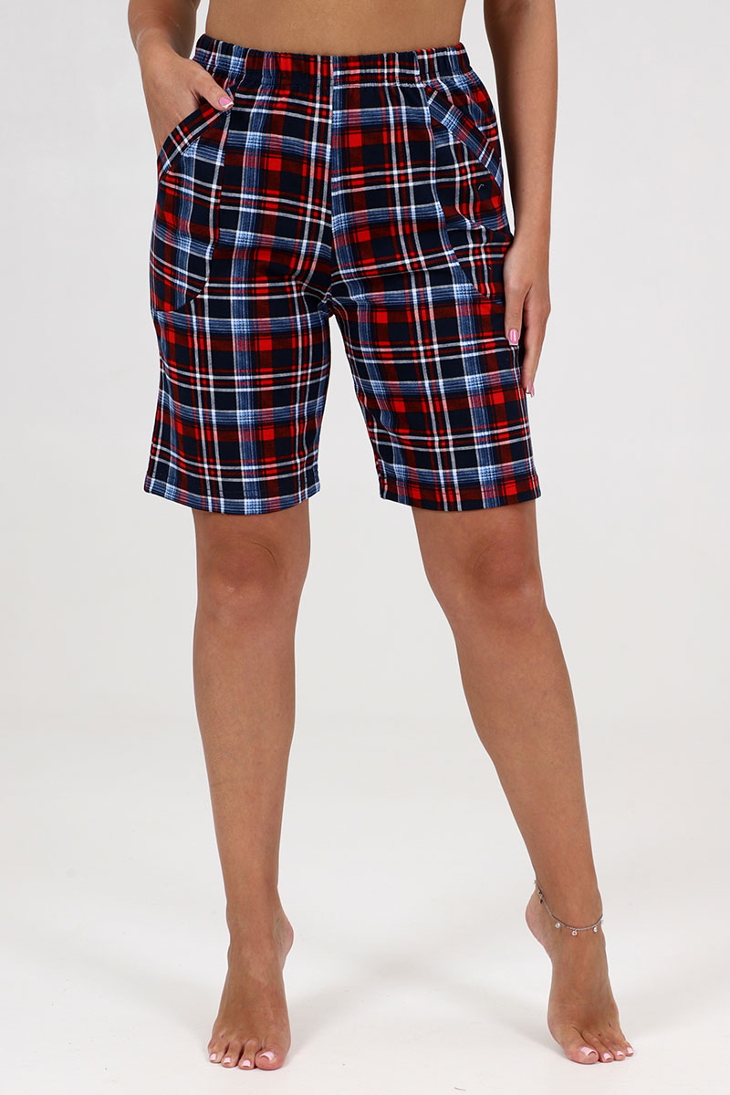 Шорты женские ШК-236 кулирка (последний размер) сине-красный с голубой клеткой 56,60