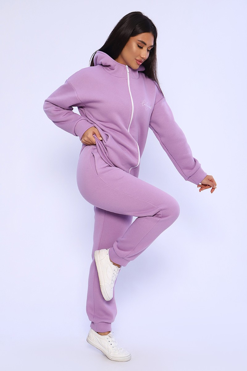 Представляем Вашему вниманию женский костюм из футера 3-х нитки с начесом. Костюм состоит из толстовки и брюк. Толстовка свободная на молнии с капюшоном, на полочке оригинальная вышивка Lady HOME, по боковому шву в шве карман. Толстовка со спущенным рукавом на манжете. Брюки свободные. По боковому шву карман в шве, низ брюк на манжете. Пояс обработан на поясной машине, что делает брюки практичными при носке – резинка не скручивается. Костюм теплый, удобный, комфортный. Идеальное решение для повседневной носки в прохладную погоду!