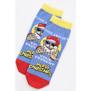 Представляем Вашему вниманию оригинальные мужские новогодние носки. В комплекте 1 пара. На основной части носка изображение Санта Клауса и надпись "Come and get your present Merry Christmas". Оригинальная расцветка делает носки отличный подарком на Новый год.