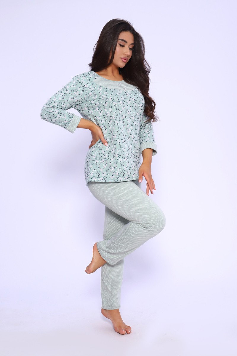 Пижама женская "Дженис" футер (р-ры: 48-60) зеленый