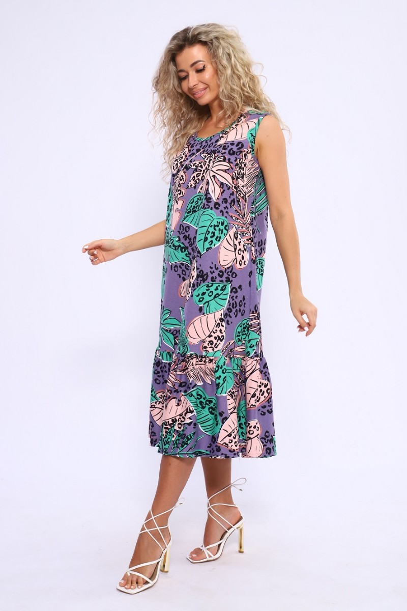Сарафан женский 589 кулирка (последний размер) лаванда-зеленый-лепесток 48-50