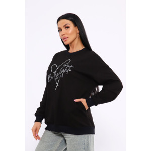 Представляем Вашему вниманию уютную женскую толстовку с карманами. Сшита из мягкого футера, свободного кроя, со спущенной линией плеча. Принт в виде сердечка. Горловина, манжеты и пояс из эластичного кашкорсе.