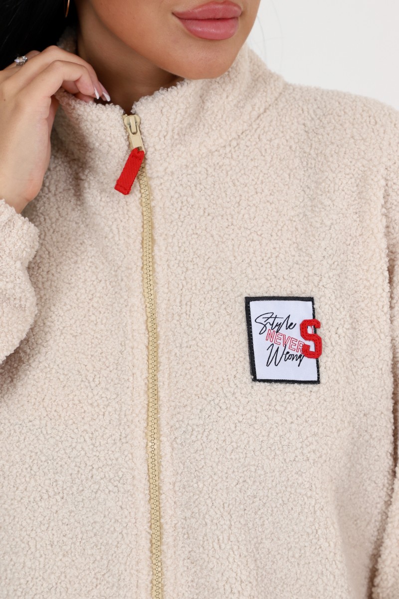 Представляем Вашему вниманию уютную женскую толстовку из букле. Толстовка с воротником стойка, с втачным рукавом, на застежку тесьма - молния. На полочке нашивка.