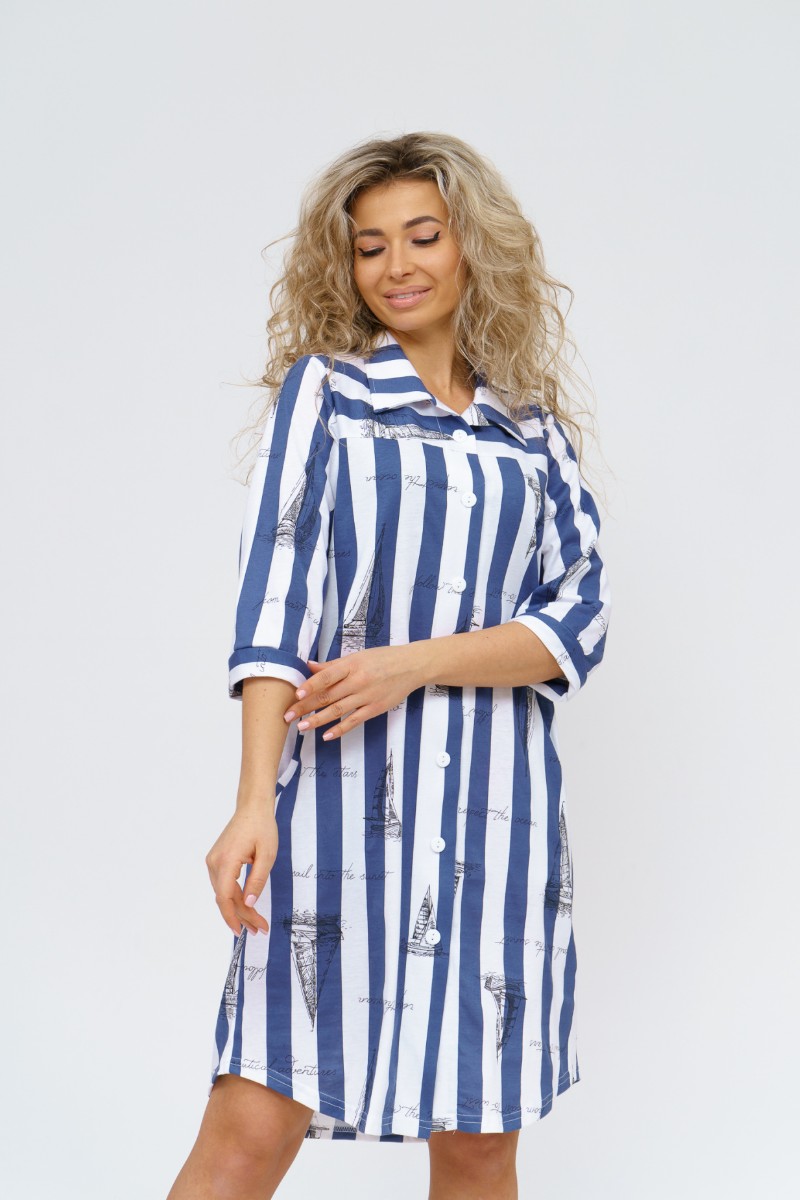 Халат женский 433 "Парус" кулирка (последний размер) синий 46