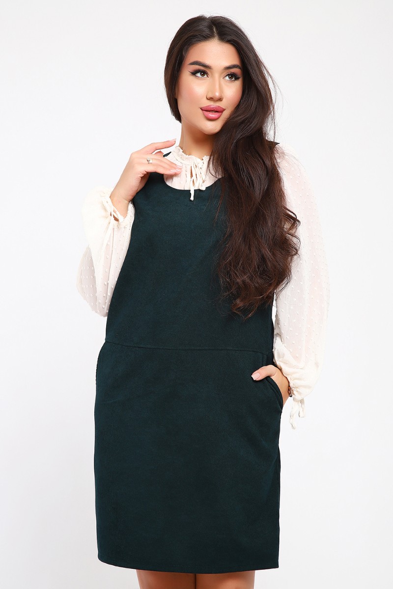 Сарафан женский №32731 микровельвет (р-ры: 48-58) темно-зеленый
