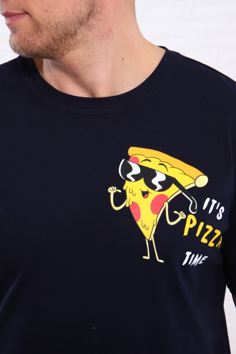 Пижама мужская "Пицца" трикотаж (р-ры: 48-58) синий
