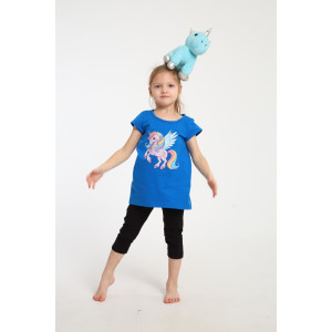 Представляем Вашему вниманию яркий костюм для маленьких принцесс собран из туники с радужным единорогом и тресс на эластичной резинке шириной 2 см. на талии. Комплект из 100% хлопка, самый удачный вариант для активного ребенка. Туника А - образного силуэта с коротким рукавом и качественной термопечатью по переду. Горловина круглая и достаточно широкая, что позволит ребенку самому без труда надеть и снять тунику через голову. Достаточно разнообразный цветовой ряд, даст возможность выбрать вам костюм по душе. На фото модель представлена в 32-ом размере.