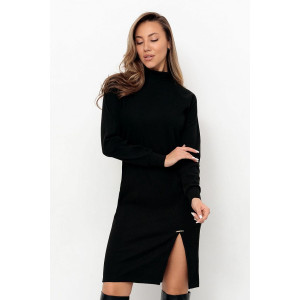 Представляем Вашему вниманию платье женское из трикотажного полотна-лапша, полуприлегающего силуэта, длиной до середины колена. Рукав -реглан длинный с манжетой. Воротник-стойка. Спереди слева в рельефе выполнен разрез. Модель украшает металлическая фирменная нашивка.Просим обратить внимание - дизайн нашивки может незначительно отличаться.