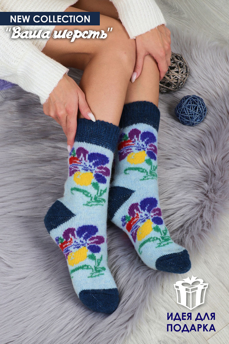 Носки женские шерстяные GL636 орнамент-цветы - упаковка 1 пара