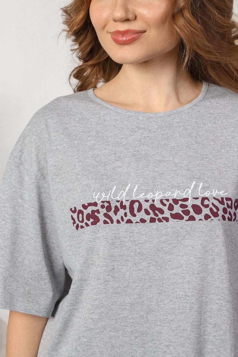 Представляем Вашему вниманию женский костюм из трикотажного полотна «кулирка» в комбинации двух видов: с набивным рисунком и гладкокрашеного в единой цветовой гамме, состоящий из футболки и шорт. Футболка - из гладкокрашеного полотна, классического покроя, с короткими втачными рукавами, горловиной овальной формы, обработанной окантовкой из основного материала и принтом на полочке, выполненным в технике «шелкографии». Шорты – из полотна с набивным рисунком, свободные, с карманами в боковых швах, на притачном поясе с эластичной тесьмой внутри.