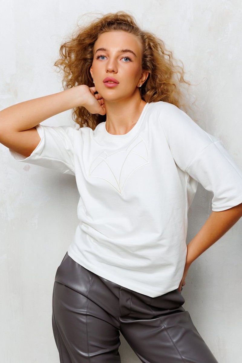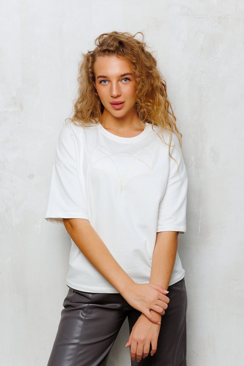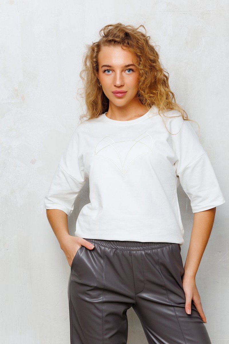 Футболка женская №342MLK футер 2-х нитка (последний размер) молочный 50-56
