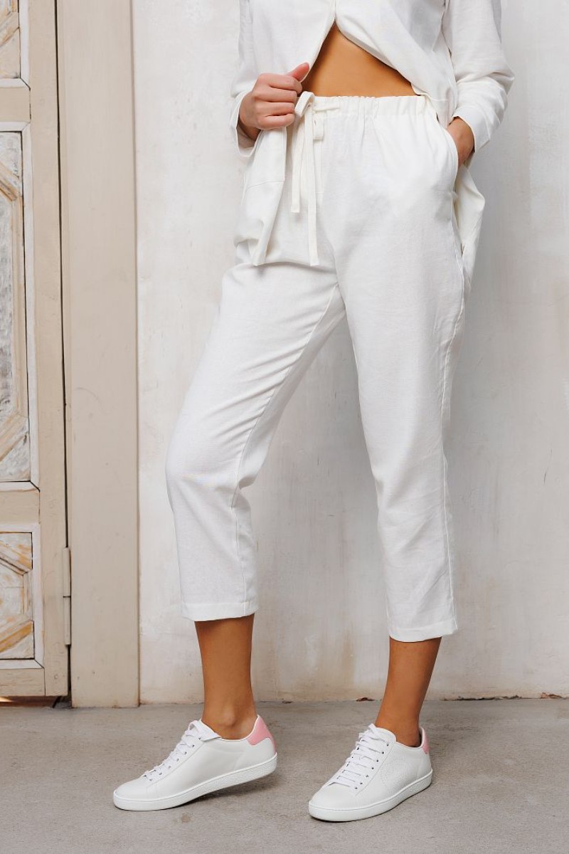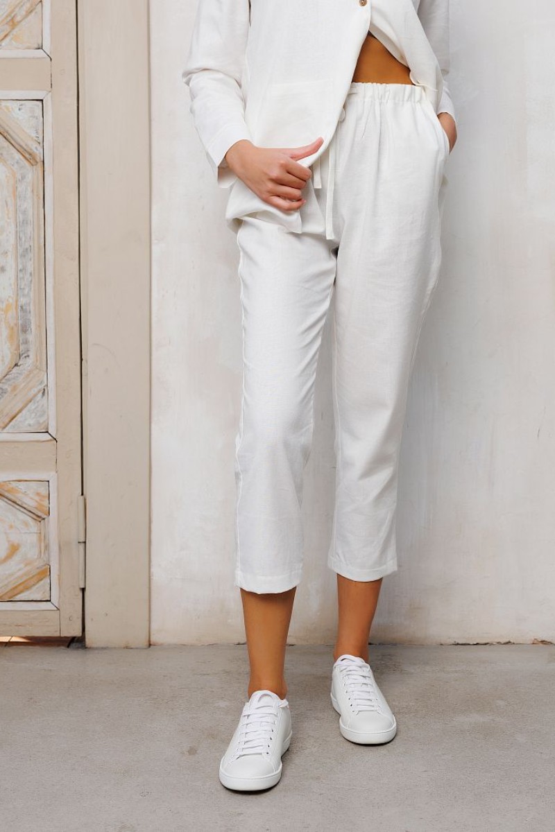 Бриджи женские №327-1WHT лён+вискоза (последний размер) белый 44,46,48,50,52